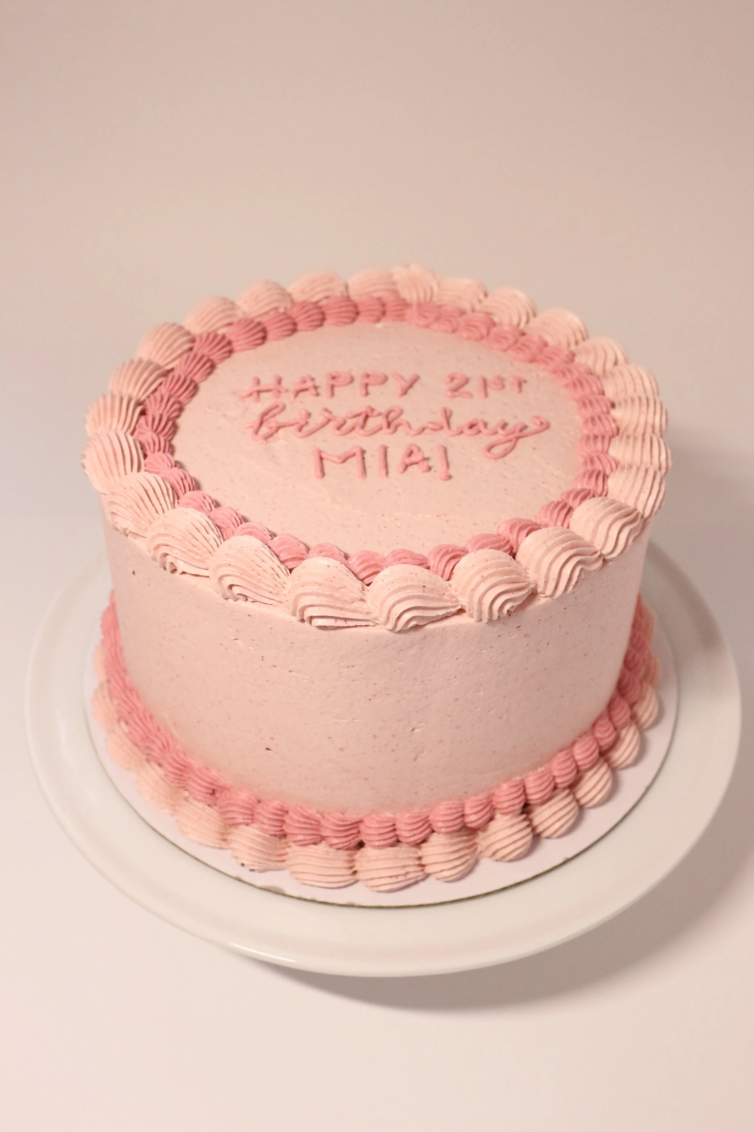 A buttery vanilla cake frosted with a strawberry Swiss meringue buttercream!