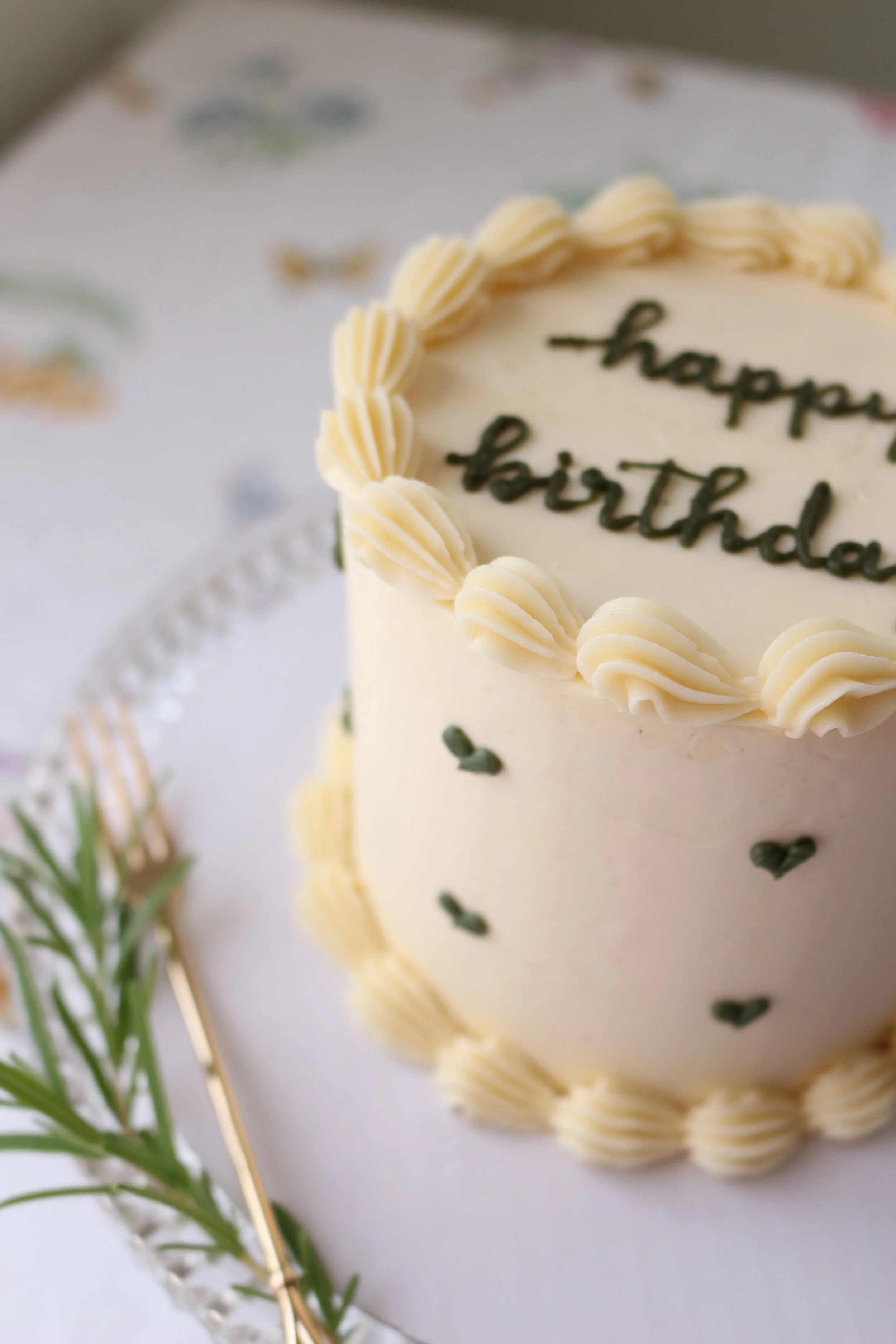A vanilla, 4” 3-layer cake for yourself or to share with someone!